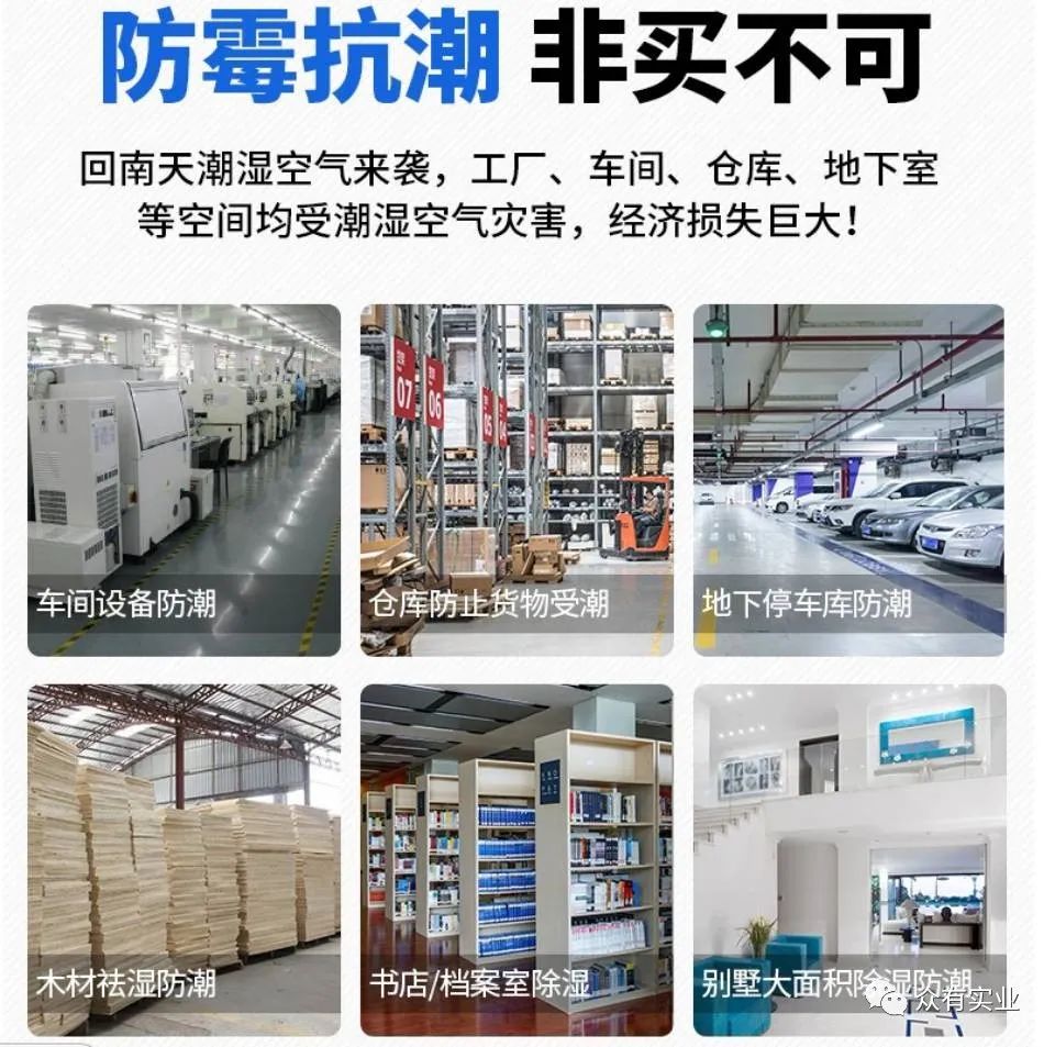 目前市場上簡單的控制車間除濕方式就是工業除濕機機,工業除濕機由風扇將潮濕空氣抽入機內,經過制冷系統(壓縮機,蒸發器,冷凝器)相互作用下凝結成霜,系統自動升溫化霜成水流入盛水箱,產生出干燥空氣排出,如此循環使室內濕度降低,潮濕空間逐步達到干爽的效果。工業除濕機能有效的控制車間內的空氣濕度,能把車間內的空氣濕度精確的控制在40%-60%(一般車間需求濕度),解決空氣潮濕帶來的煩惱。