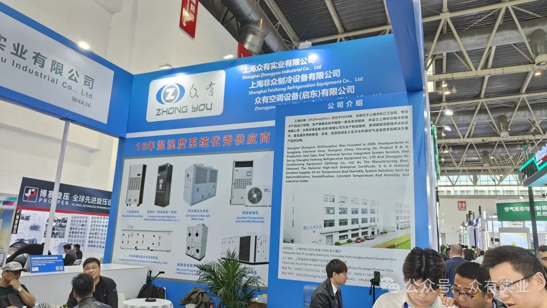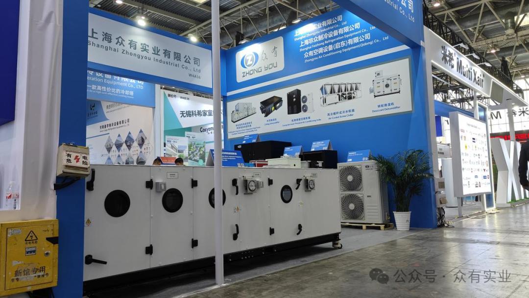 本次展覽中,眾有實業展示了多款創新產品,包括工業除濕機、機房精密空調機組、凈化型直膨式變頻恒溫恒濕機組以及恒濕機(除濕加濕一體機),充分展現了公司在制冷領域的強大研發實力和創新能力。