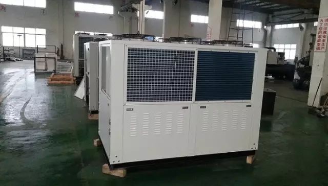 箱式冷水機組,一般是100KW以下的以推薦風冷箱式冷水機組,一般標配有不銹鋼水箱和高性能的專用水泵,壓縮機一般以谷輪、丹佛斯、大金、三洋壓縮機。谷輪生產地分蘇州和沈陽